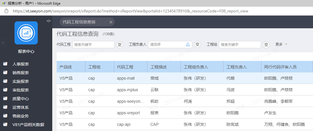 如果你不知道Git工程的负责人是谁,可以通过公司系统报表中心->报表分析->“代码工程信息查询”进行搜索查询。