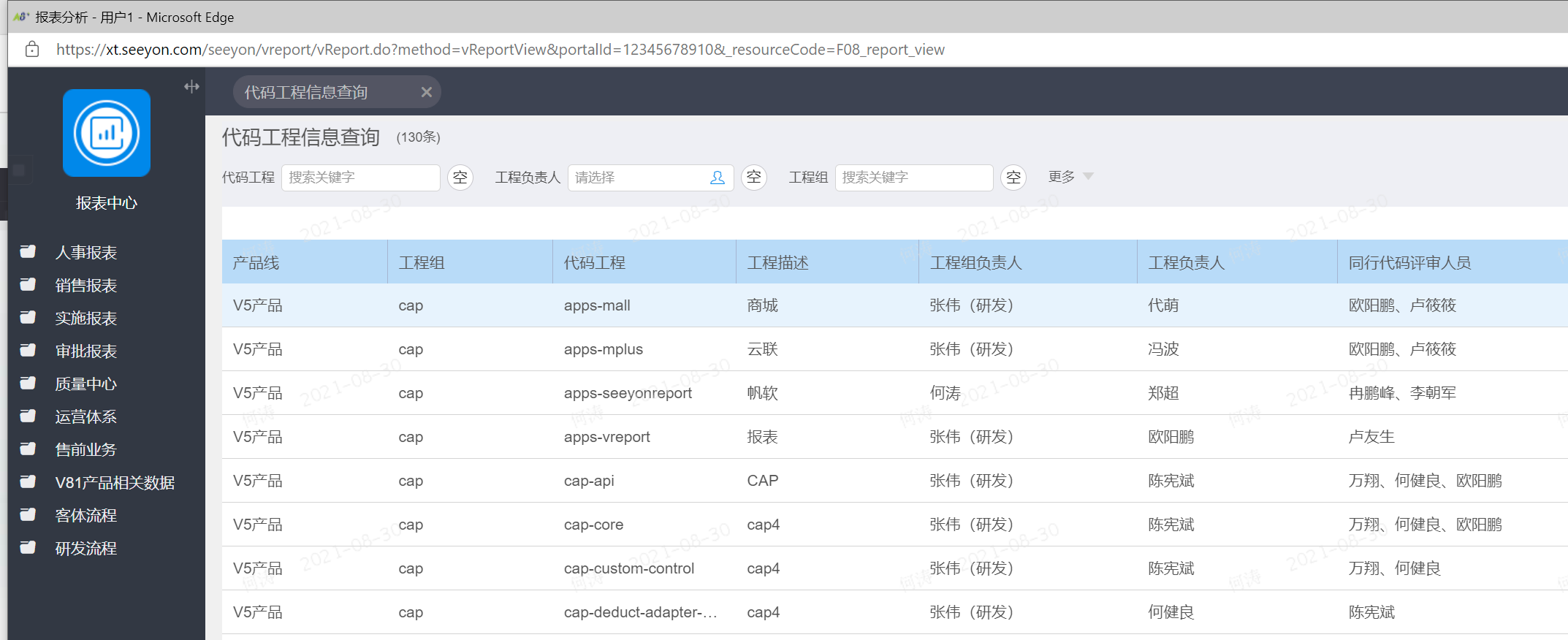 我们维护了一张“代码工程信息查询”的底表,可以在上面设置每个工程的负责人和同行代码评审人员,如果Master需要更新同行代码评审人员,可以联系QA更新底表数据。