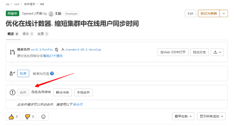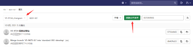 检查修改无误后,通过“创建合并请求”按钮进行代码合并申请。