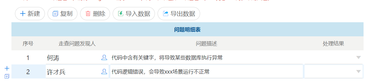 如果不正确,则在表单重复表上增加一行问题记录,随后直接处理协同即可,问题会流转给发起人↓↓↓