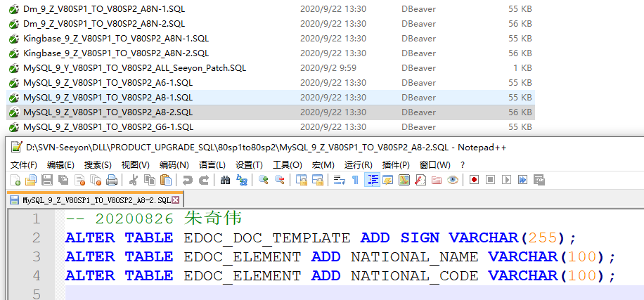 以上这种需要多条SQL结合操作的,都要把代码放在升级程序里执行。