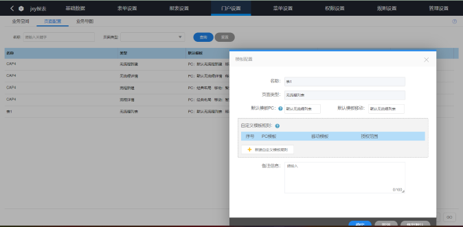 在弹框中点击默认模板PC