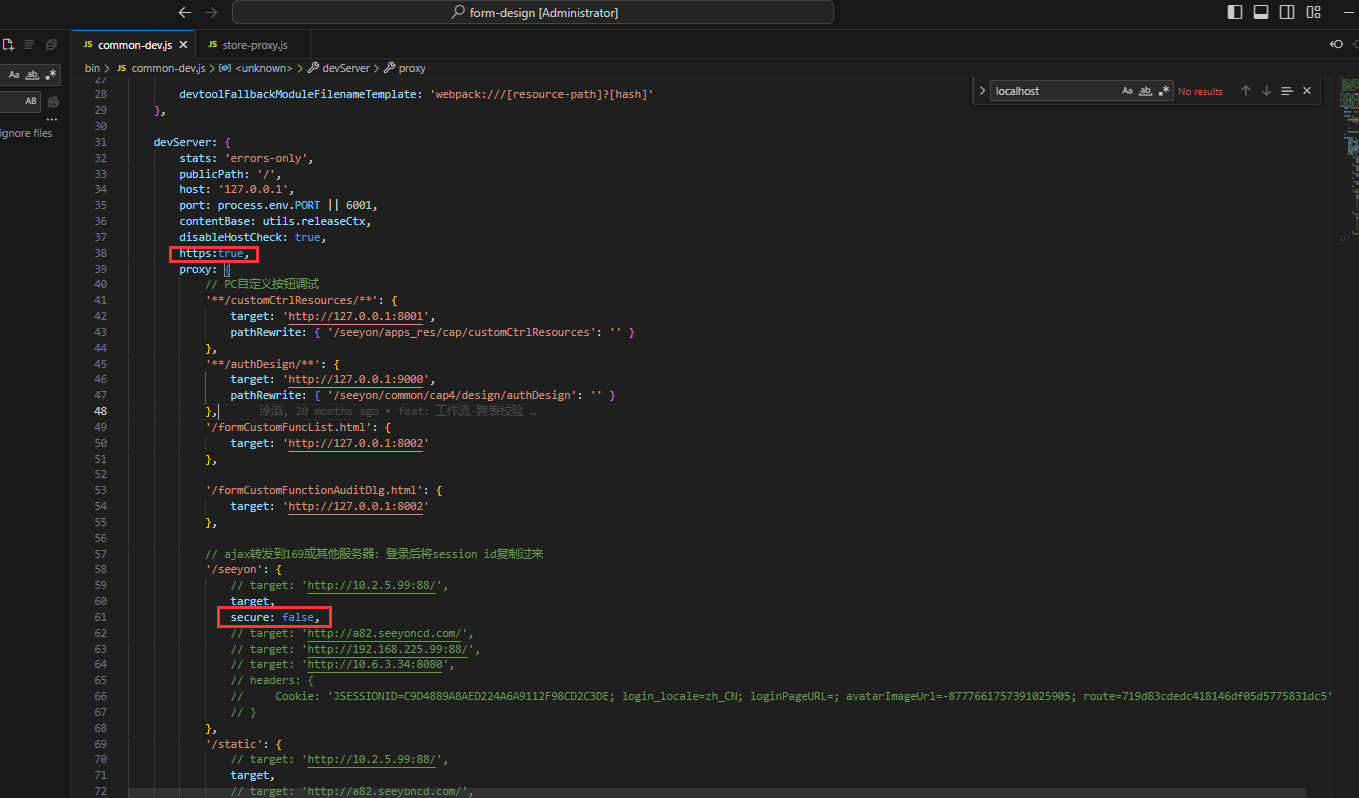 运行后,将代理地址的设计器页面url index.html后的复制下来,放到运行本地工程的地址后就可以调试了