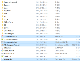 将步骤一生成的source.db、FileCompareTool.jar和 ReadWin.bat / CompareLinux.sh放到 对比环境的OA安装目录