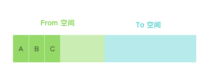 程序中声明的对象首先会被分配到 From 空间,当进行垃圾回收时,如果 From 空间中尚有存活对象,则会被复制到 To 空间进行保存,非存活的对象会被自动回收。当 From 空间中的所有非存活对象被清除之后,From 空间和 To 空间完成一次角色互换:From 空间会变为新的 To 空间,原来的 To 空间则会变成新的 From 空间