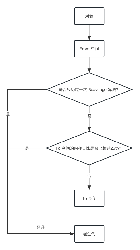 对象是否经历过一次 Scavenge 算法:通过检查该对象的内存地址来进行判断