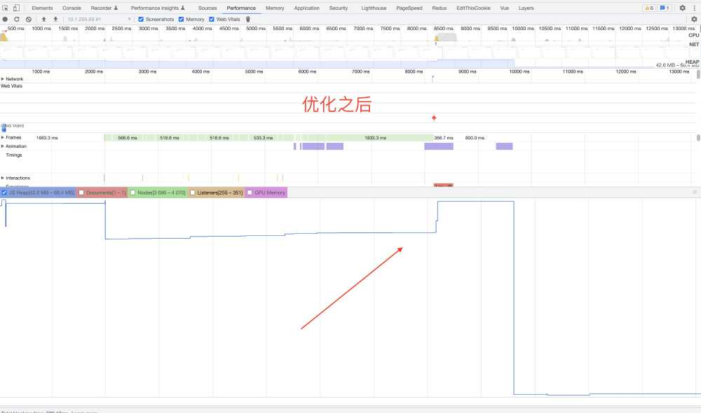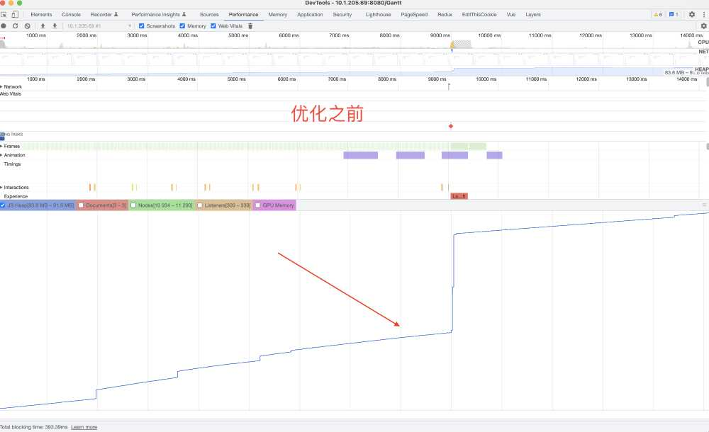 如果你有类似的处理经验,那么会很容易猜到可能是因为存在着内存泄漏,且大概率为未手动清除定时器,最终造成内存溢出,导致了整个页面崩溃、js 主线程一直被长时间占用