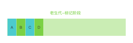在标记阶段,将对象 A 和对象 C 标记为活动的